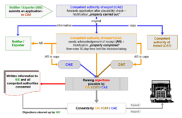 After verification of completeness and plausibility of the application (notification is properly carried out), NGS initiates a notification procedure by transmitting the notification to the competent authority of destination as well as to possible competent authority(ies) of transit.